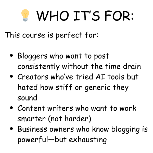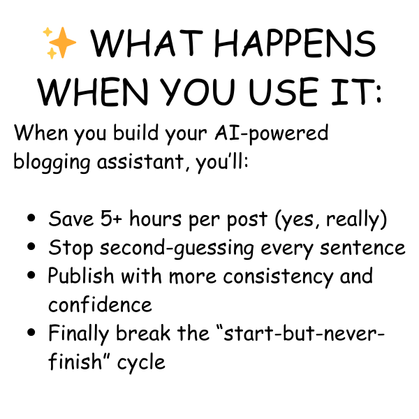 This micro course shows you how to build your own AI-powered blog assistant that thinks in your voice, understands your content style, and helps you publish faster, without sounding like a robot.